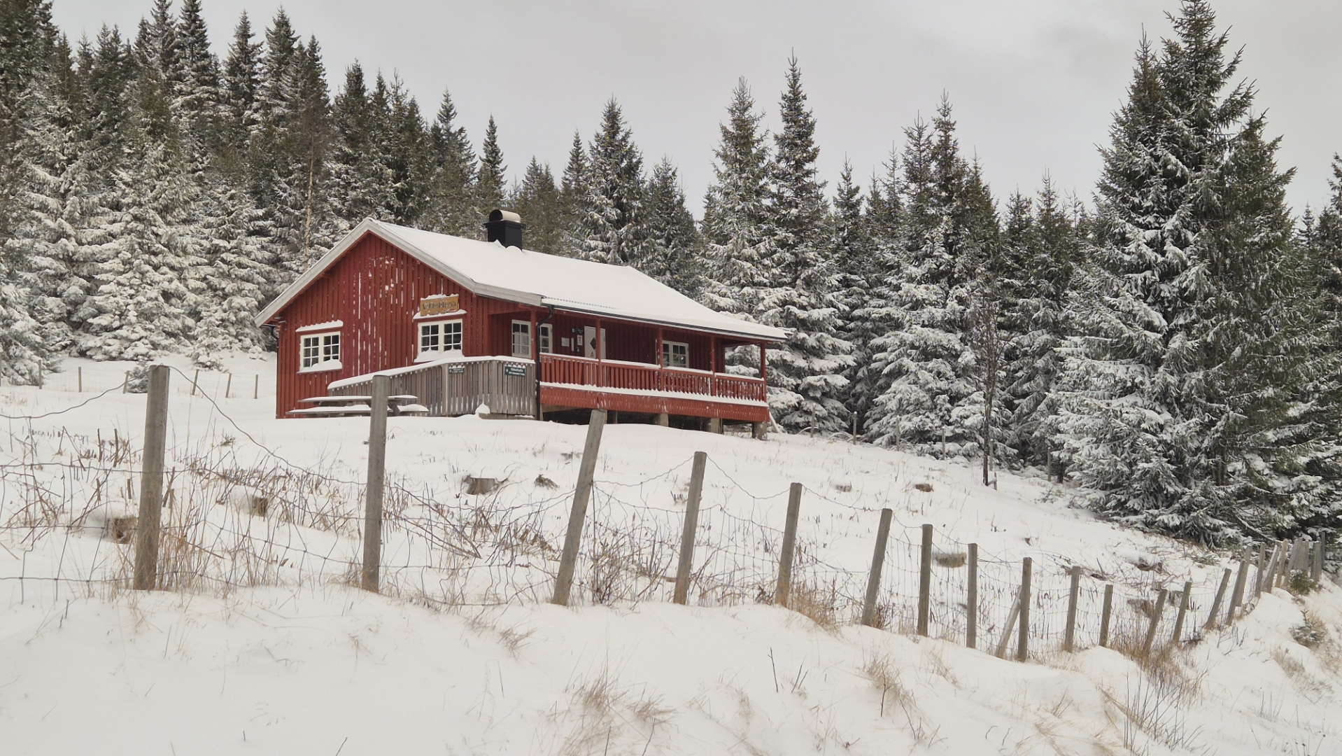 Dagsferskt bilde viser Vikkelihytta i vinterprakt på Nordåsen ❄️